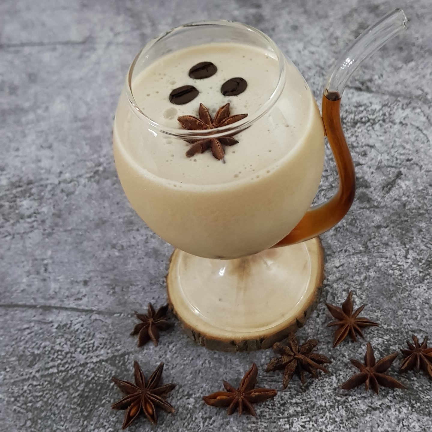 Decoración: Canela en polvo, tres granos de café tostado. Se puede acompañar con un bombón de chocolate y almendras (tomemos en cuenta que es un trago digestivo).
