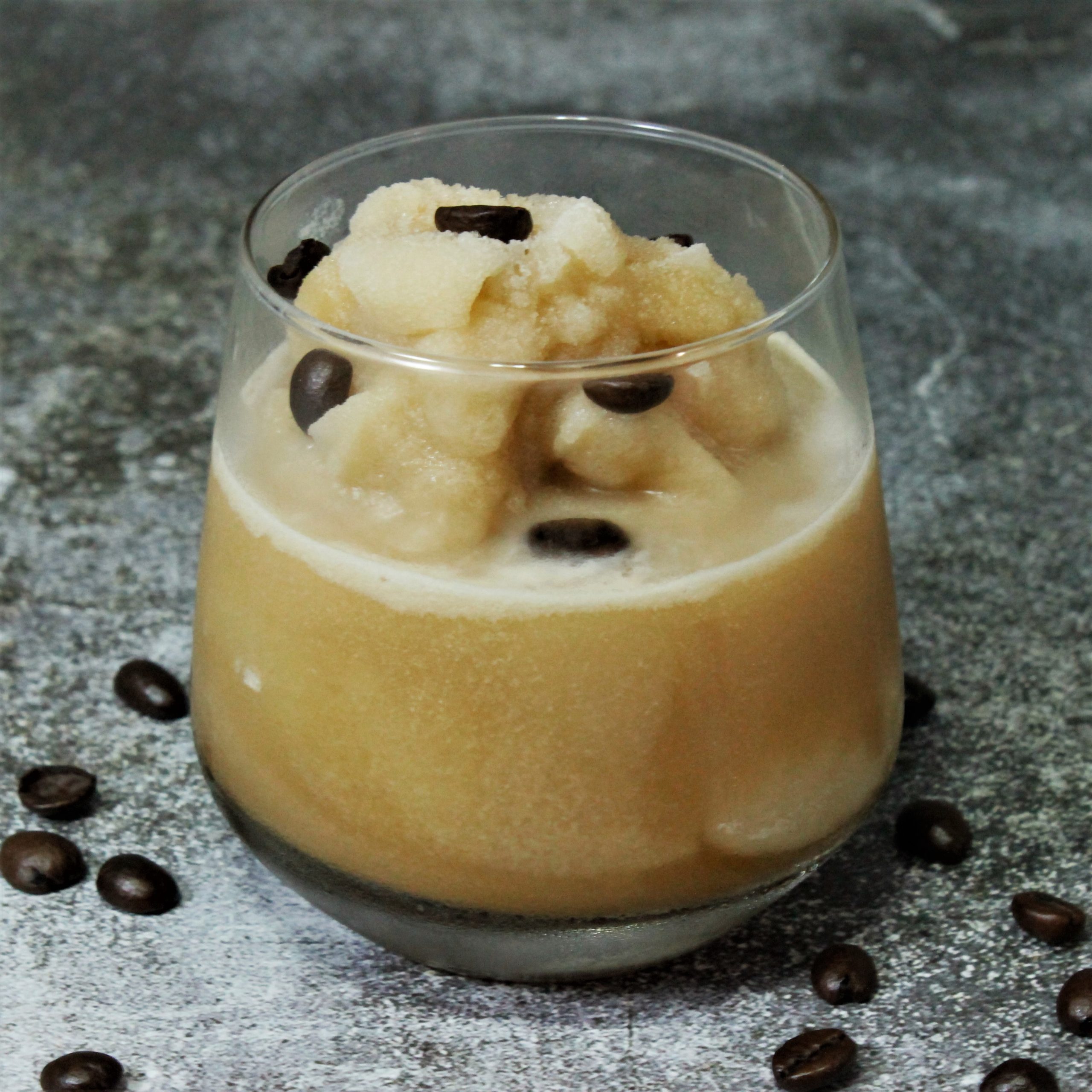 Decoración: Flaming de naranja, un grano de café tostado.