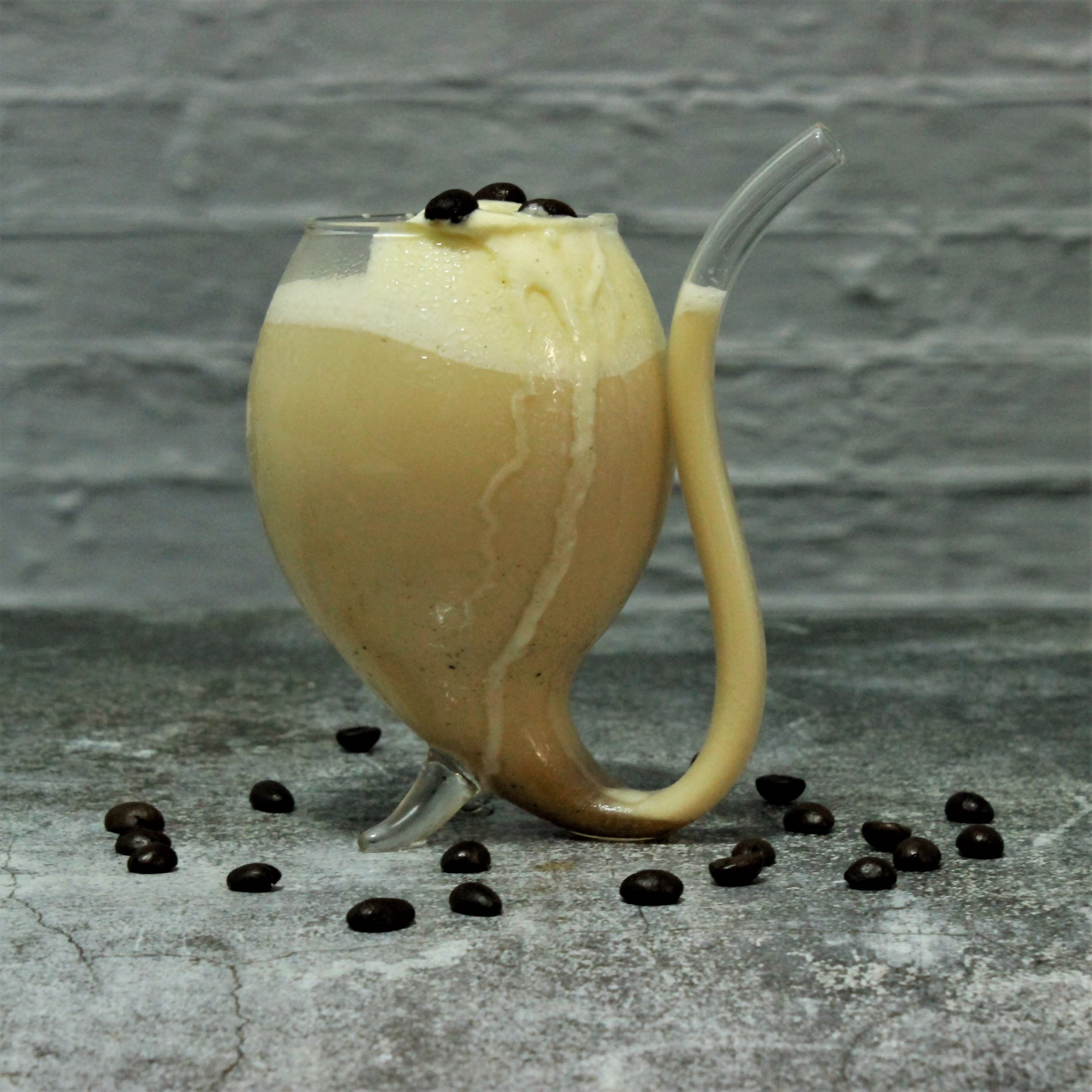 Preparación: Técnica Directo al Vaso. Colocar hielo en un vaso corto (Old Fashioned) agregar el Ron y Café seguido leche fría (pasteurizada) tratar de no mezclar al servir.