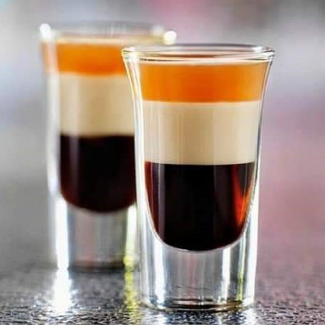Decoración: Los tres colores Negro, beige y Naranja de los licores al servirlos son la presentación del trago.
