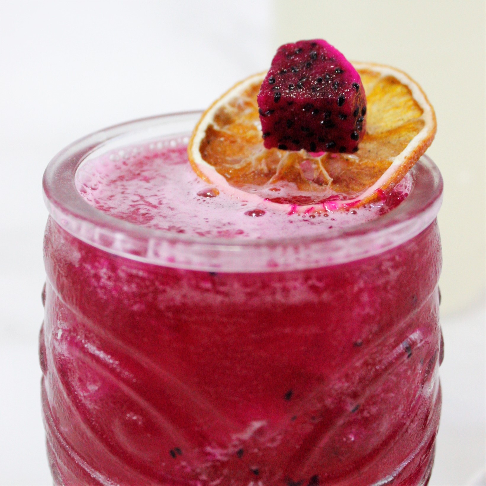 Preparación: Técnica Macerado – Agitado. Colocar el dragon fruit directo en el tin de la coctelera, triturar con el mortero, seguido colocar el resto de los ingredientes más 4-5 cubos de hielo, agitar bien para dar textura e integrar la mezcla y servir en la copa o vaso selccionado (si lo consideran agregar una piedra mas de hielo).